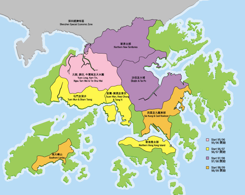一九九六年,渠務署進行了七項有關「雨水排放整體計劃」的研究,尋求全面解決水浸問題的方法。各項研究的主要目標如下: