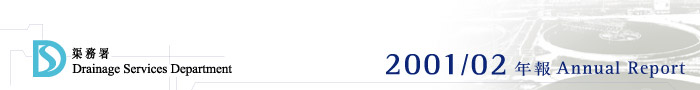 A new version of DSD’s Homepage was successfully updated in mid 2002, which includes quick reference to the latest progress on flood prevention works and emergency services during flooding. We pledge to keep the website updating and any news will be uploaded as soon as possible under the NEWS column through the form of press release or other bulletins. An e-mail address is printed on the first page of the website welcoming any views on DSD or our works from the public.