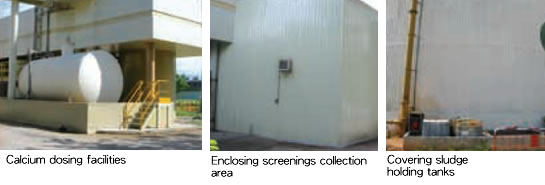the formation and emission of odour, mainly hydrogen sulphide, calcium