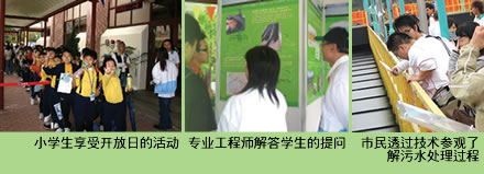 昂船洲污水处理厂开放日于二○○四年三月十三至十四日成功举行。超过9,500位市民透过技术参观、摊位游戏、展版及影片等活动了解污水处理过程。 |