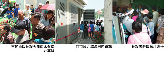 位于大屿山大澳的3 号防洪抽水站于二○○四年四月十八日举行了它的第一次开放日。富资料性和教育性的宣传展品及有关抽水站趣异的设施吸引了大约740名参观者,当中包括大澳的居民、学生及普罗大众。是次开放日大大加深了参观者对渠务署在这低洼地区的防洪工作的认识。