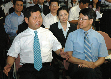 深圳市市長參觀昂船洲污水處理廠 深圳市市長許宗衡於二○○五年九月在渠務署官員陪同下,參觀昂船洲污水處理廠,親身了解本港污水處理工作。 |