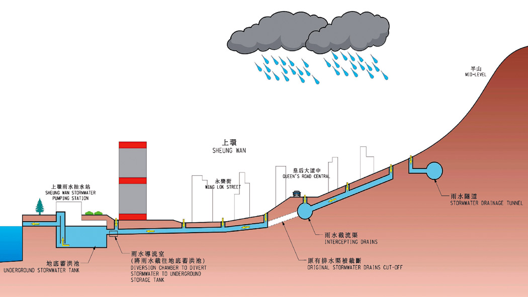 would be built to remove stormwater onto Wing Lok Street. Upon completion