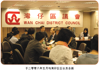 为落实政府建议加强与区议员之沟通,渠务署出席不同地区的区议会会议,向当区的议员介绍本署的职能和在该区的主要工程项目。除了各级同事出席不同地区的区议会会议,在二零零八至零九年度,署长先后到访了中西区、大埔、沙田、南区、黄大仙区区议会,这不但加强了政府与地区间之连系,而且更可听取议员对我们工作的宝贵意见。 |