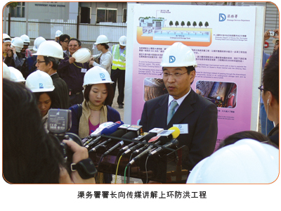 渠务署设有专责公关组处理与传媒沟通的工作。我们主要透过新闻发布会、专题访问、参观活动、午餐会等,让传媒取得本署最新消息及动向。参观上环洪水泵房是渠务署在二零零九年首个与传媒见面的活动,活动于二月举行,除安排传媒朋友实地视察快将落成启用的泵房及地下蓄洪池外,并且与署方高层同事一同茶聚,在轻松的环境下跟他们作出交流。 |