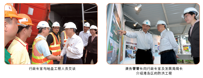 在二零零九年二月,行政长官曾荫权先生在发展局局长林郑月娥和渠务署官员陪同下,到薄扶林数码港视察港岛西雨水排放隧道工程。曾特首不但听取工程项目及施工进度,还与工地人员交谈,了解他们的工作及现时建造业的就业情况。 |