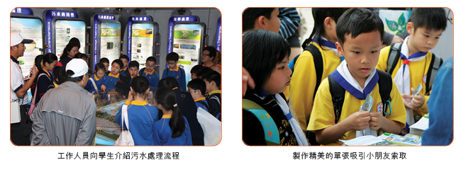 為慶祝渠務署成立二十周年,本署在二零零九年舉行四個開放日。首個開放日於二零零九年三月二十一日在昂船洲污水處理廠舉行,吸引了五千五百多名市民參觀。當日我們安排了三百多名同事招待參觀人士,並首次邀請本署的合作伙伴展出有關防洪、除污及淨流的新技術和設施。由於是次開放日是以部門成立二十周年為主題,我們特備了一條長約六十米的展覽長廊,介紹本署在過去廿載在防洪和污水處理的工作,並展示多個大型工程的模型,與市民一同見證渠務署在過去二十年的發展和成就。 |