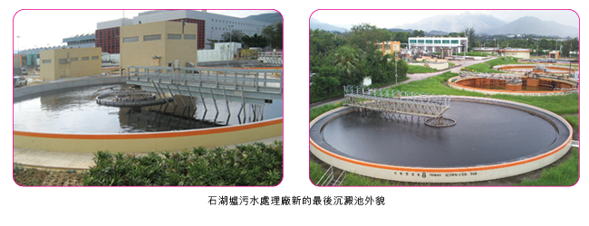 石湖墟污水處理廠是一座位於上水的二級污水處理廠,其污水處理量為每日80,000立方米。石湖墟污水處理廠現時處理粉嶺及上水地區所產生的污水。經處理的排放水會經梧桐河及深圳河排入后海灣。該廠採用的污水處理程序包括初級處理(篩除、沉澱)和生物程序(活性污泥),以去除懸浮固體、含碳物質和含氮物質。為應付粉嶺及上水地區一帶的人口增長,以及擴建的污水收集系統所帶來日益增加的污水量和污染物,石湖墟污水處理廠擴建工程已於二零零五年九月動工,以提升污水處理量至每日93,000立方米。擴建工程包括改裝、重建及增加污水和污泥處理設施,並於二零零九年二月完成及投入服務。擴建後的石湖墟污水處理廠現時可為三十萬人口提供污水處理服務。 |