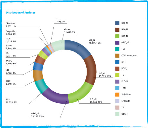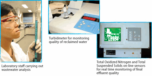 A comprehensive sampling scheme is in place to provide pollutant loading measurement and monitoring of treatment efficiencies at various treatment units. This is to ensure effluent is treated to meet mandated discharge licence conditions and provide precise data for quality compliance.