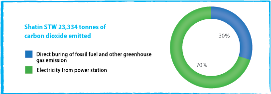 In a year, Shatin STW emits a total of 23,334 tonnes of carbon dioxide, which is equivalent to emitting 0.26 kg of carbon dioxide per cubic metre of sewage treated. Our result was