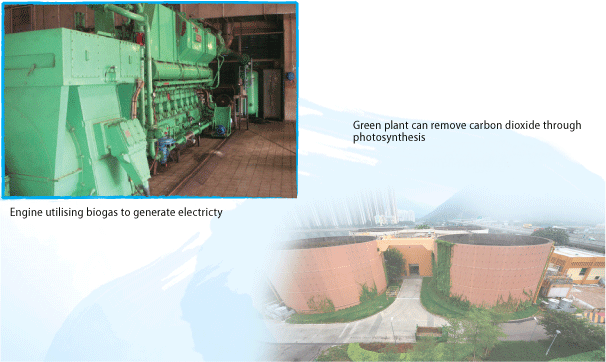 Apart from the utilisation of renewable energy, green plant are able to remove carbon dioxide through photosynthesis. Thus tree-planting has been carried out in the sewage treatment facilities to reduce the carbon dioxide emission. |