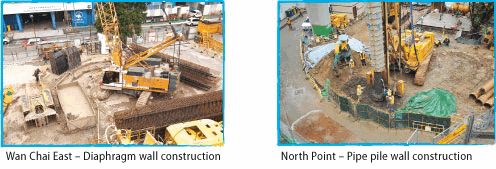 Since the commencement of the tunnel contracts in July 2009, we have achieved good progress in the construction of shafts which involved diaphragm wall and pipe pile wall construction, grouting, construction of noise enclosure, and the installation of the mucking system. |