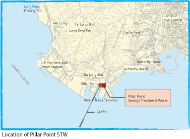 The existing Pillar Point STW came in operation in 1982 as a preliminary treatment works. It only removes solids and grits from the sewage inflow prior to discharging the treated effluent into the north-western waters via a twin submarine outfall. Currently, the quantities of sewage flow and septic waste are about 170,000 m3 per day and 600 m3 per day respectively.
