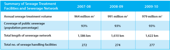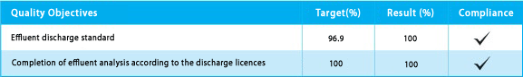 Committed to providing world-class sewage treatment services, we have set a series of strict quality objectives to monitor our performance. In 2009-10, full compliance with all the targets was achieved. |