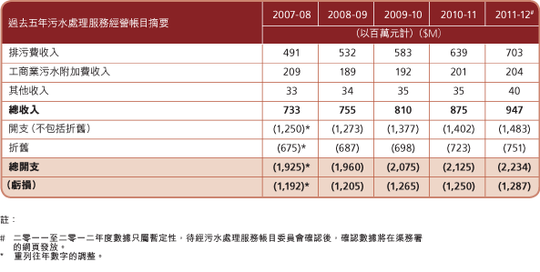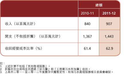二零一零至二零一一年度和二零一一至二零一二年度的污水處理服務收回成本率如下: