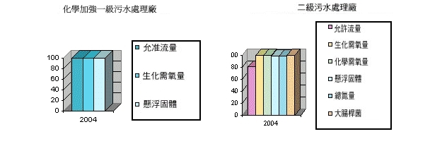 化学加强一级污水处理和二级污水处理厂在 2004年符合法例规定的百分比