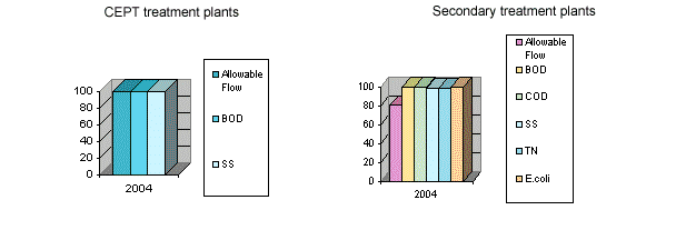 Percentage Compliance in 2004 for CEPT and Secondary Treatment