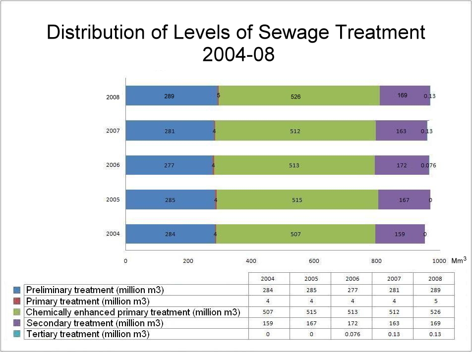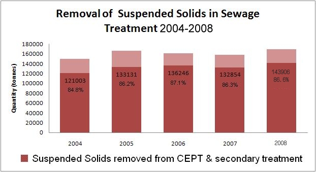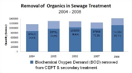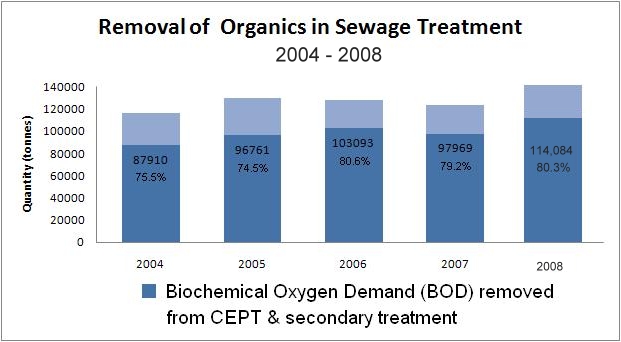 sewage treatment plants removed about 114,000 tonnes of BOD, 144,000