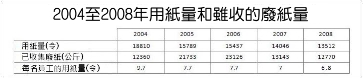 環保辦公室 渠務署注重辦公室的環保工作。我們會繼續努力在辦公室節約資源,例如將室溫調節至攝氏25.5度、減少走廊的燈光、使用再造紙及回收打印機碳粉盒和光管。我們的環保審查小組負責執行審查工作和提醒員工,把不使用的電腦和配件裝置關掉。我們還把辦公室的個別照明強度調低,以節省用電,但也會按個別需要把照明調校至充足的亮度。至於在用紙方面,我們在2008年的用紙量進一步減少9%,由14 046令減至13 512令,當中99%為再造紙。我們也舉辦了兩項活動,以加強員工環保辦公室的意識。