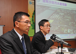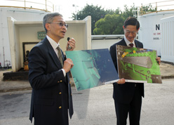 Our Chief Engineer (Sewerage Projects), Mr. Lai Cheuk-ho (right), and Chief Engineer (Sewage Treatment), Mr. Lo Kin-hung (left), briefed the media about the development of cavern sewage treatment works in Hong Kong