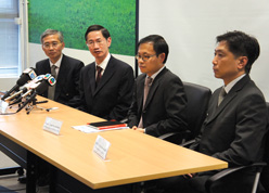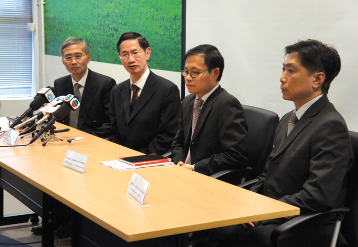 Assistant Director (Electrical and Mechanical) of Drainage Services, Mr. She Siu-kuen (second left), together with other speakers, introduced our carbon audits and carbon emission reduction measures to the media