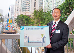 - On 26 March 2013, Director of Drainage Services, Mr. Chan Chi-chiu updated the media on the latest flood prevention measures and the related works over a luncheon, during which views from both sides were exchanged. Subsequent to the luncheon, we arranged a site visit to Kai Tak River Improvement Works (Upstream Portion) to media. Media were briefed on the flood prevention measures, temporary traffic arrangement as well as beautification works of the project.