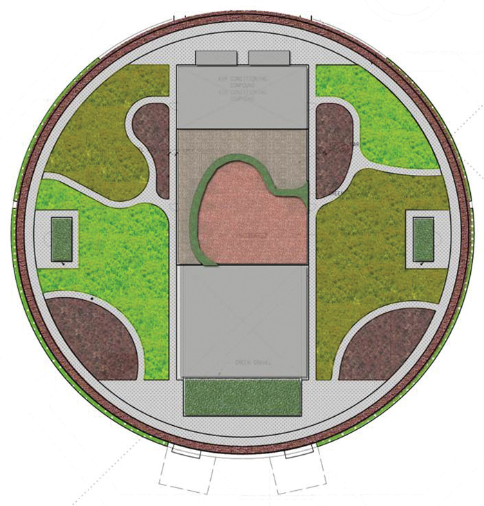 Site roads will be enhanced by the introduction of local plant species in a combination of planting boxes and beds next to the existing tanks. Roofs will be turned into a series of vividly green landscapes with a mixture of shrubs, groundcover plants and gravelled paths.