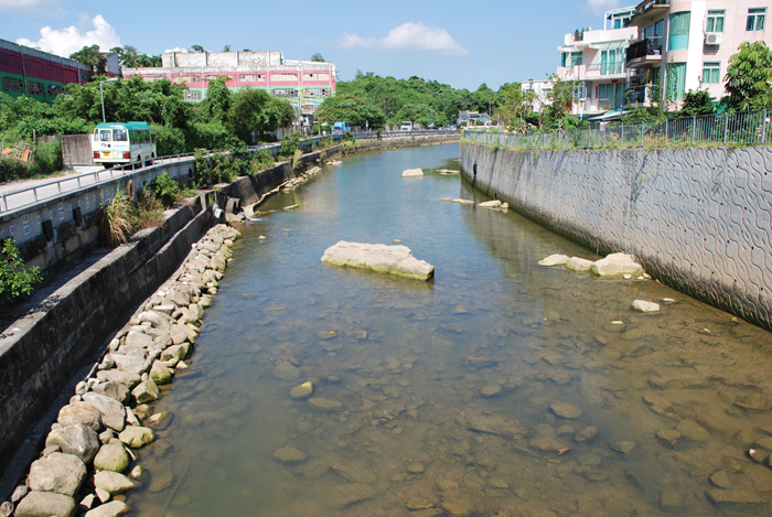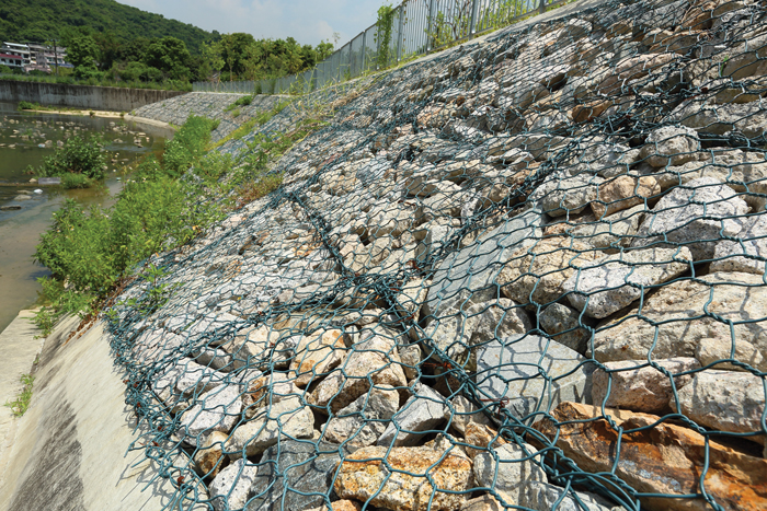 To alleviate the local flooding risk, the existing rivers at Tai Po have been trained for enhancing their drainage capacity. The banks of the widened rivers were paved with rockfill mattresses/gabion units or grasscrete aiming to simulate the riparian environment in existing rivers.