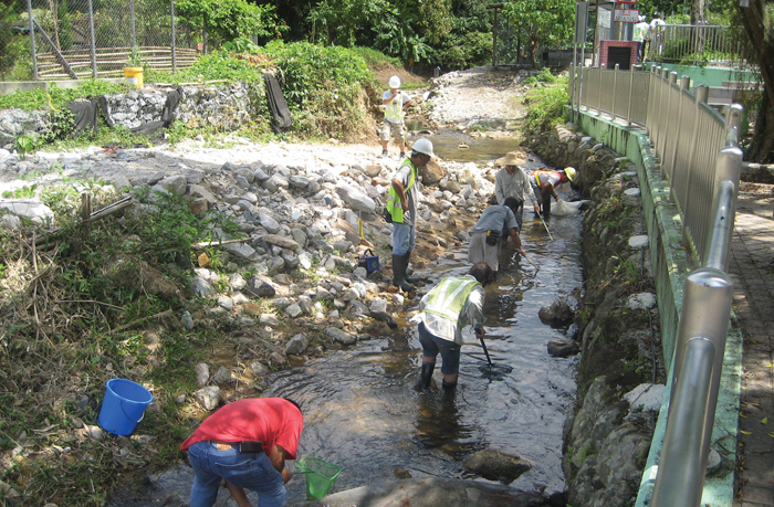 Lam Tsuen River is the home of a protected freshwater amphibian species namely Paramesotriton hongkongensis. To preserve this valuable ecological resource, we have relocated the species to the upstream of the stream course within the construction site prior to the commencement of the river improvement works and before we resume works at the beginning of each dry season. Once captured, the species were immediately released at the river upstream of the construction site.