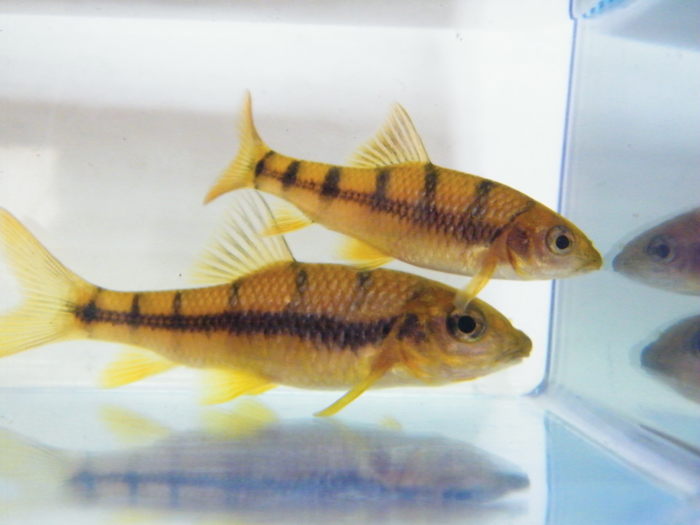 Acrossocheilus parallens is distinguished by the presence of a dark lateral stripe and 6 to 7 short blackish vertical stripes