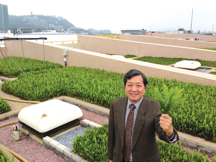 Deputy Director of Drainage Services, Mr. Tsui Wai, explained the study of green roof at Shatin Sewage Treatment Works to the media