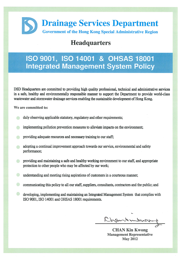 To provide world-class wastewater and stormwater drainage services enabling the sustainable development of Hong Kong