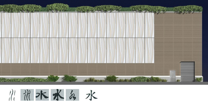 The elevation treatment consists of three main features, namely synthetic timber cladding, green vegetation at ground and roof levels, and a signature series of tricolor render modular panels reflecting the ancient Chinese pictogram for water, which improve the appearance of the buildings