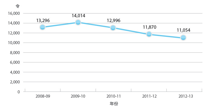 多年來我們在辦公室推行多項節能和節約資源的措施,其中包括把室溫設定在攝氏25.5度、減少非必須的照明及在公用設備安裝時間掣。我們亦設立回收點回收打印機碳粉盒、環保充電池、紙品、塑膠和金屬容器等。為進一步提高員工的環保意識,我們定期發放綠色資訊以及巡查辦公室。隨著無遠弗屆的無線通訊科技,我們推出「無紙會議」系統,使用電子產品,如平板電腦和手提電腦作簡報和討論。我們的用紙量自2009-10年度起持續下降。我們在2012-13年度的用紙量約為11,000令,較2009-10年度減少21%。