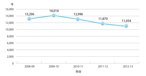 隨著無遠弗屆的無線通訊科技,我們推出「無紙會議」系統,使用電子產品,如平板電腦和手提電腦作簡報和討論。於2012-13年度,本署已進行大約252個無紙會議,當中以電子方式傳閱1,900多份文件。配合多項環保措施如電子傳閱和雙面打印,我們的用紙量自2009-10年度起持續下降。我們在2012-13年度的用紙量約為11,000令,較2009-10年度減少21%。