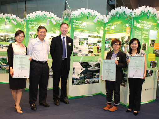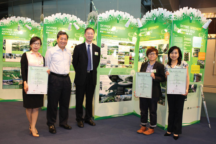 本署3項工程項目於高空綠化大獎2012獲獎,嘉許我們高空綠化與建築環境的努力。「沙田污水處理廠綠化天臺」及「大坑東雨水泵房垂直綠化」分別榮獲政府項目組別銀獎及優異獎;「沙田污水處理廠垂直綠化研究」則獲得規劃研究項目組別優異獎。