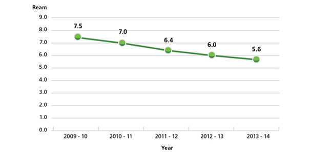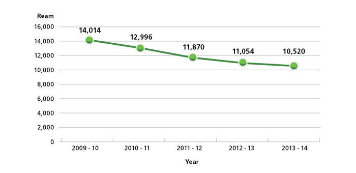With the fast development of wireless communication technology, we have introduced a “paperless meeting” system, using electronic devices such as tablet computers and notebooks for presentations and discussions at meetings. About 300 paperless meetings were conducted in 2013-14 with more than 2,700 documents circulated and viewed through this system. Together with other green measures, such as electronic circulation and double-sided printing, DSD’s paper consumption has been constantly decreasing since 2009-10. Our paper consumption in 2013-14 was about 10,500 reams, i.e. about 25 per cent reduction as compared with 2009-10.