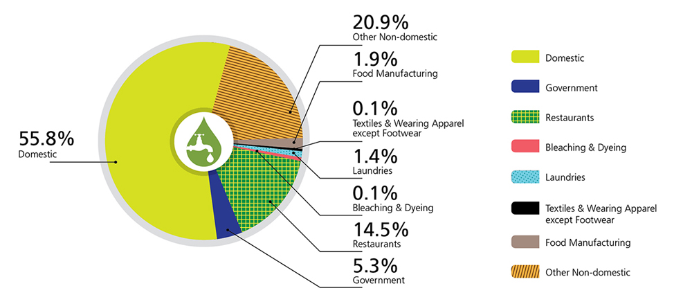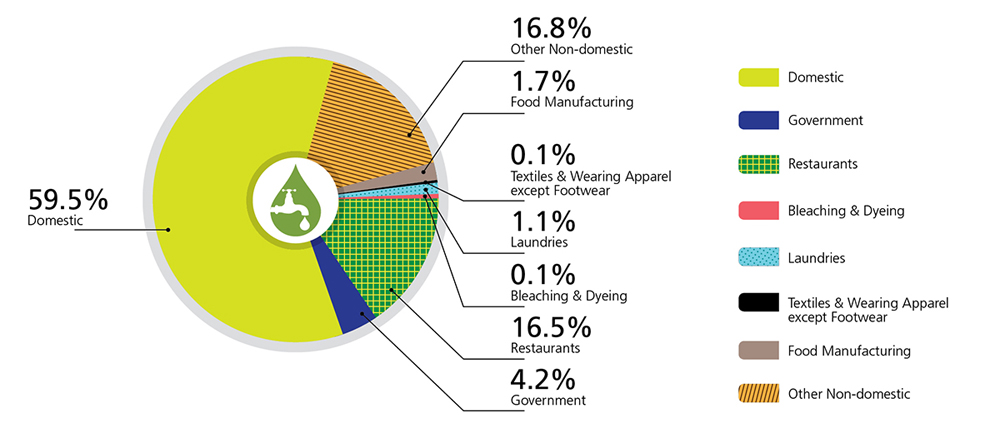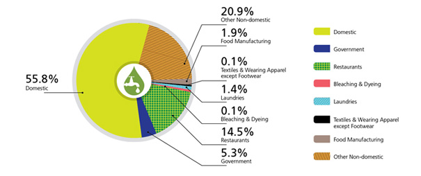 Water Consumption of Sewered Accounts (528 million m3) - Customers Pattern