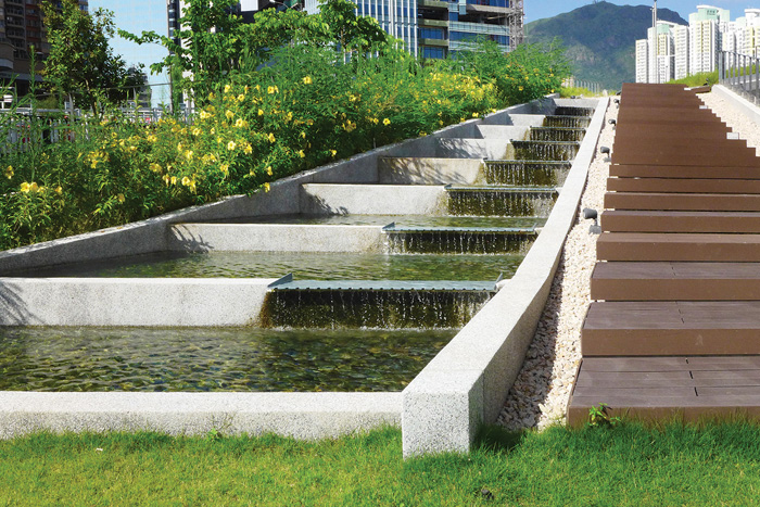 Elements of sustainable drainage systems, such as the provision of bioswale, rain garden, permeable pavement, have been introduced to minimise the impact of excessive runoff. DSD has completed a feasibility study on the application of permeable pavement in Hong Kong and is conducting site trials at SCISTW.