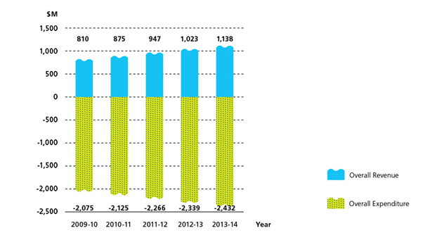 Overall Revenue of Sewage Services Operating Accounts Breakdown in 2013-14 ($M)