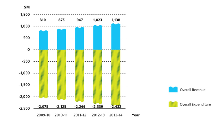 Overall Revenue and Expenditure in the Sewage Services Operating Accounts ($M)