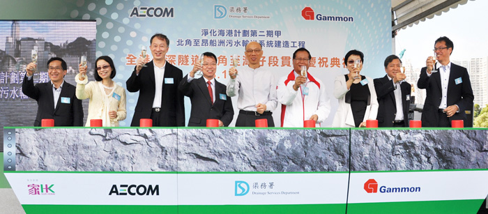 HATS Stage 2A’s 21-kilometre sewage conveyance system, with maximum depth at 160 metres below sea level, is one of the deepest sewage tunnels in the world. The tunnel section between North Point and Wan Chai East (approximately 3.2 kilometres), and that between Aberdeen and Sai Ying Pun (approximately 7.5 kilometres), both constructed by drill-and-blast method, were successfully broken through in end-2013. Whereas for the two smaller diametee tunnel sections between Ap Lei Chau and Aberdeen (approximately 1.3 kilometres in total) constructed by horizontal directional drilling, all the pipe pulling works were completed in March 2014.