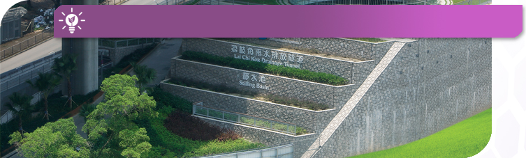 The Butterfly Valley Road Pet Garden, which was built on top of the LCKDT’s stilling basin, has been opened for the public’s enjoyment since March 2014. The area was originally reserved as the maintenance area. For the sake of better and more effective land use, DSD and the Leisure and Cultural Services Department joined hands to transform the land into Kowloon’s largest pet garden, with an area of 7,000 square metres.