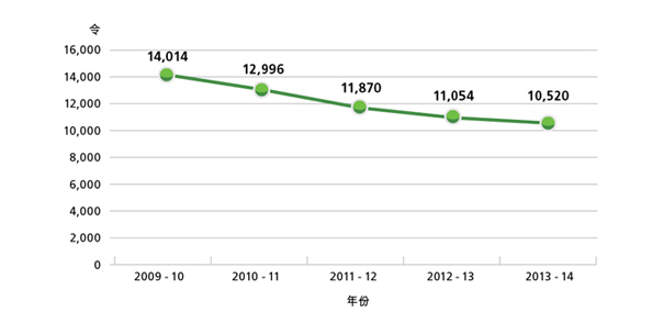 在2013-14年度,我們的節能表現令人滿意,其中沙田污水處理廠的優化曝氣系統及混合沉澱方案,以及昂船洲污水處理廠的離心式脫水機優化程序,減幅尤為顯注。
