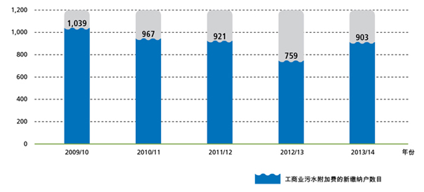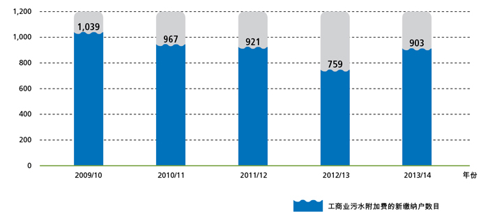 过去5年所发现工商业污水附加费的新缴纳户数目