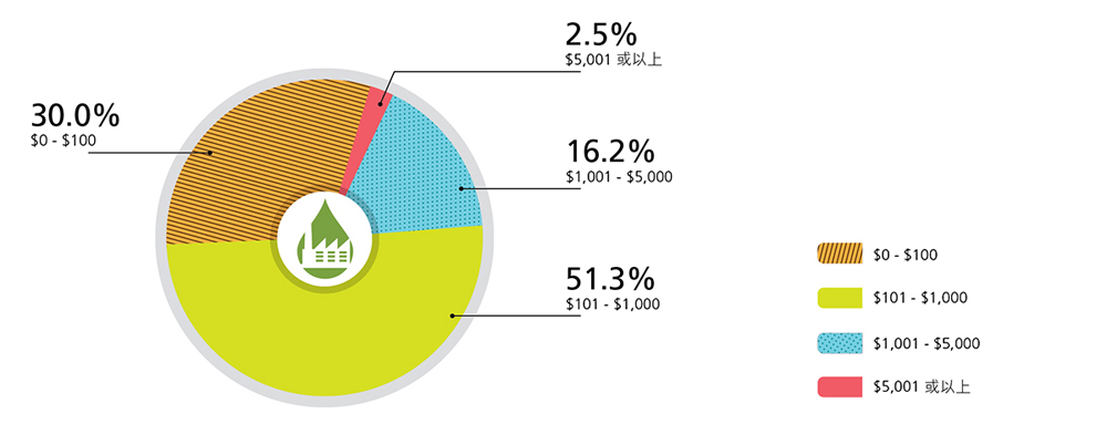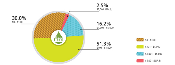 工商业污水附加费用户 - 工商业污水附加费收费情况(港元/月)