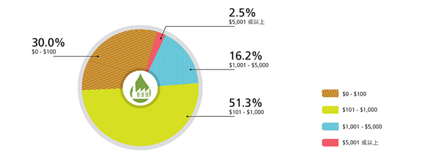 工商業污水附加費用戶 - 工商業污水附加費收費情況(港元/月)