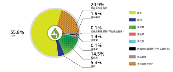 工商業污水附加費(221百萬港元) - 用戶種類收費情況