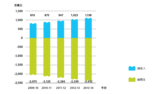 - 2013-14年度數字只屬暫時性,有待污水處理服務帳目委員會確認。
