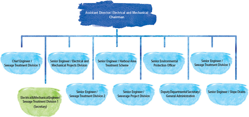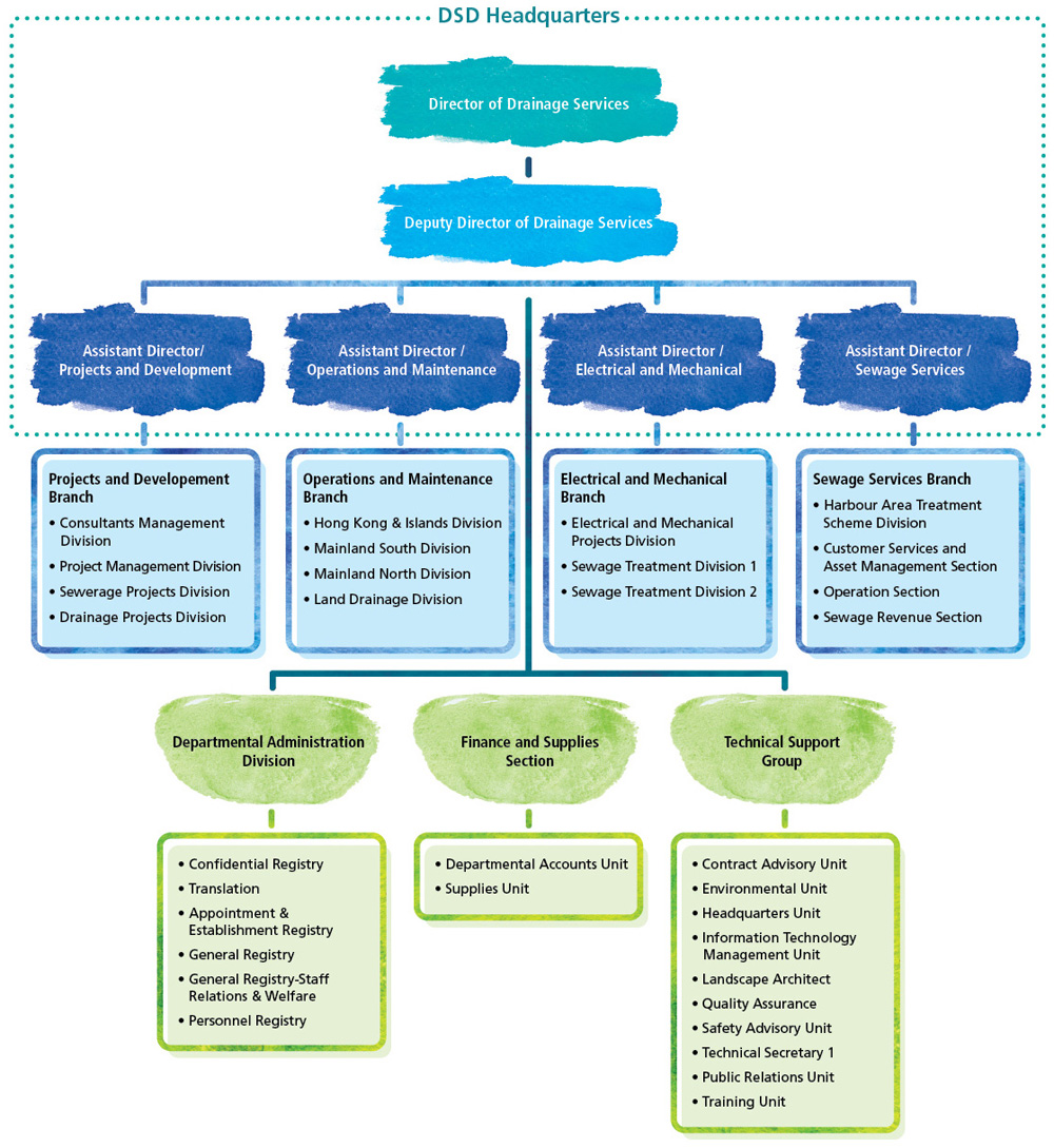 DSD’s senior management is headed by the Director of Drainage Services and comprises the Deputy Director of Drainage Services and four Assistant Directors. The senior management is responsible for making important policy decisions and overseeing the Department’s daily operations. They also shoulder the duty to develop and review DSD’s sustainability strategies, policies and objectives.